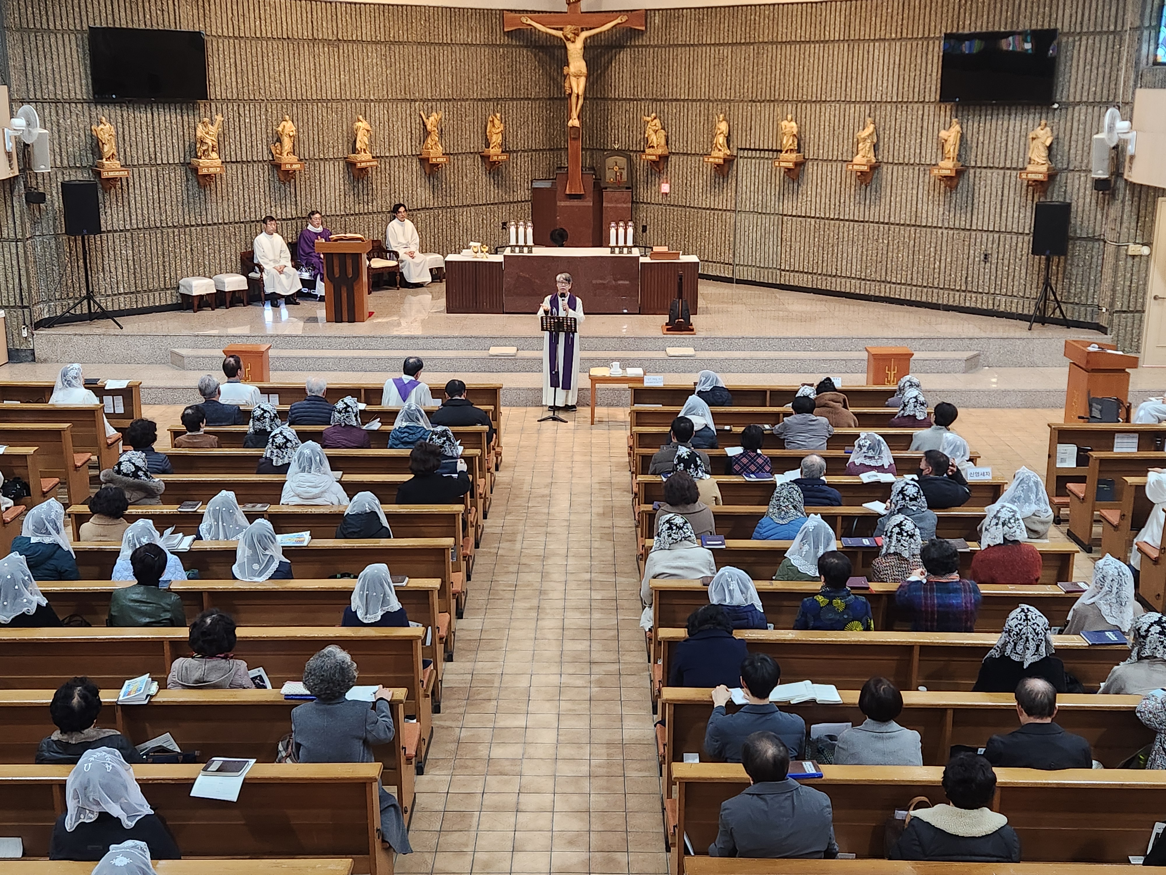 교중 미사 중 대구가톨릭대학교 문화영성학과 학과장 최동석 안드레아 신부님의